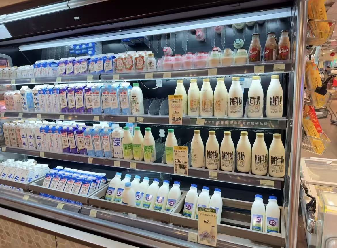 广州某超市乳品选购区。